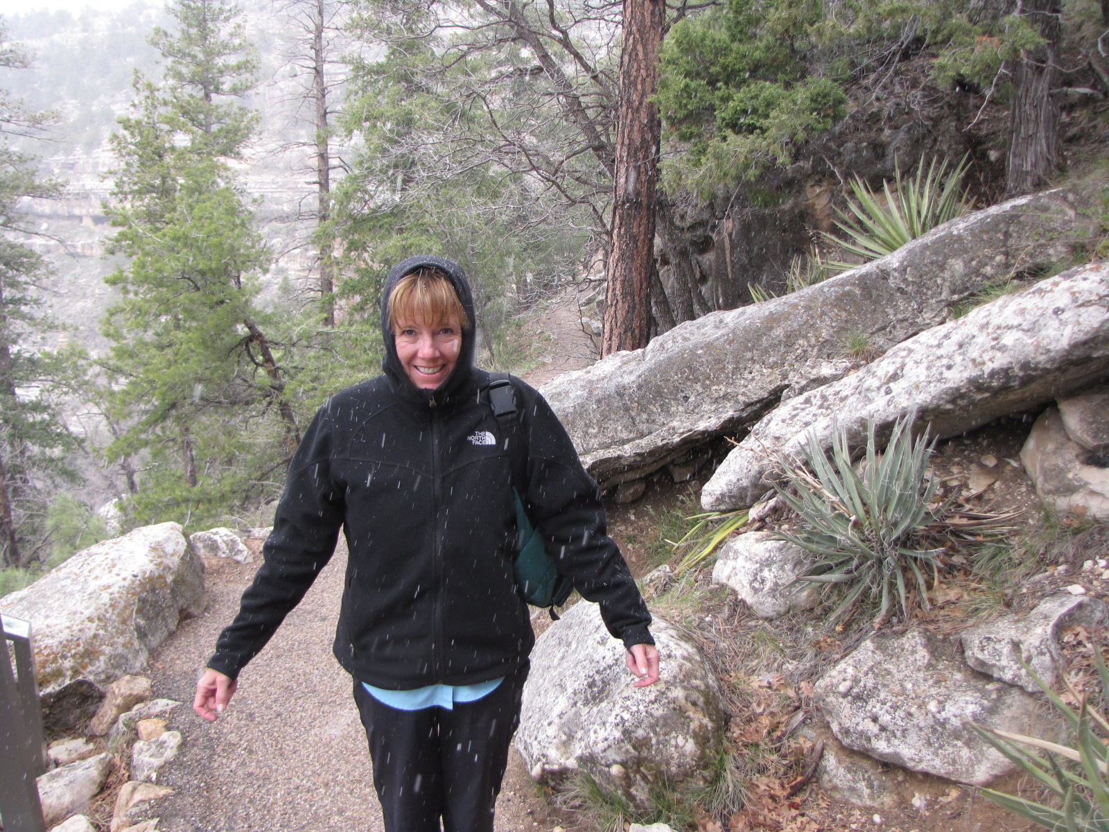 Hiking Walnut Canyon. It is snowing!!