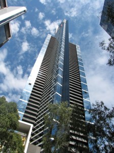 Eureka Tower is named after the Eureka Stockade, a rebellion during the Victorian gold rush in 1854. This has been incorporated into the design, with the building's gold crown representing the gold rush and a red stripe representing the blood spill during the revolt.