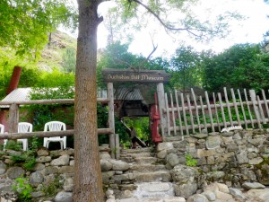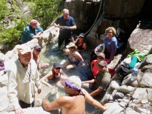Up at 7am for a fabulous French Toast breakfast with fruit and bacon. This morning we rode on the Dory with Barry. We stopped at an incredible Hot Springs to soak. It was built by the Smith Brothers and named Barth Hot Springs. It was a very cool place to take a hot tub!