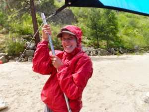 Setting up tarp preparing for rain