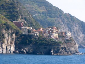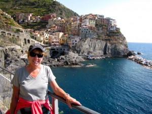 The next day we left for Cinque Terra. Driving in Italy was a challenge, fast drivers and hard to read signs all made driving an adventure. We had a hotel reserved in La Spezia , but drove around town and never found our hotel even with a GPS system to help us! John got quite frustrated and decided to head back to a sweet little town called Borghetto we had passed and the Hotel Belvedere on the main street. We checked in there with no problem and ample parking. Our room was clean and we had a nice view of the mountains behind us. The restaurant was reasonable with good food so we decided to eat here , also. We enjoyed our time there.
