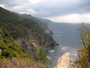 View of Riomaggiore in background. We bought a 2 day pass for the train and rode it to Riomaggiore then hiked from there to Manarola after exploring the town.