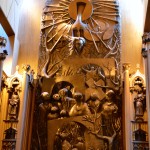 http://www.youtube.com/watch?v=TPEB3wT6b4YThe chapel had burned in a fire in 1978 and “Quebec sculptor Charles Daudelin was commissioned to create the new altarpiece. This consists of 32 bronze panels, which were cast by Morris Singer Founders of London, England. The altarpiece is 5 metres wide and 8 metres high (16 feet by 26 feet) and weighs 20 tons.”